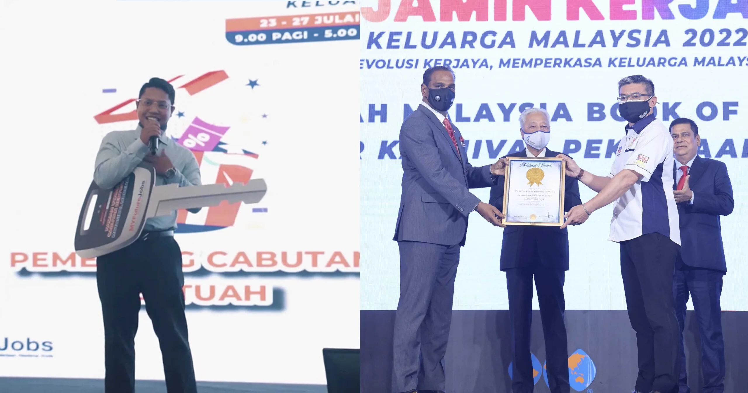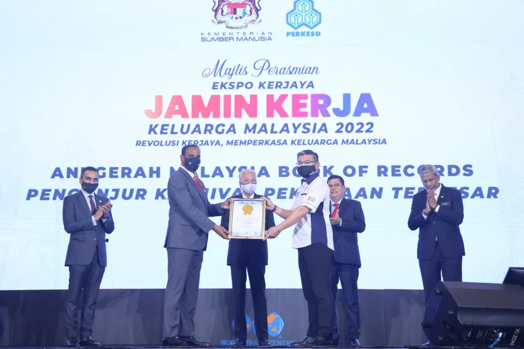 Ekspo Kerjaya Jamin Kerja Keluarga Malaysia 2022 yang membuka tirai sejak Sabtu yang lalu (23 Julai) diiktiraf Malaysia Book of Records (MBOR) sebagai Karnival pekerjaan terbesar dianjurkan oleh Kementerian Sumber Manusia (KSM) dan Pertubuhan Keselamatan Sosial (PERKESO).