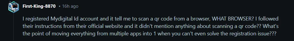 Selain soal prinsip, ada juga rungutan teknikal berkaitan proses pendaftaran MyDigital ID.