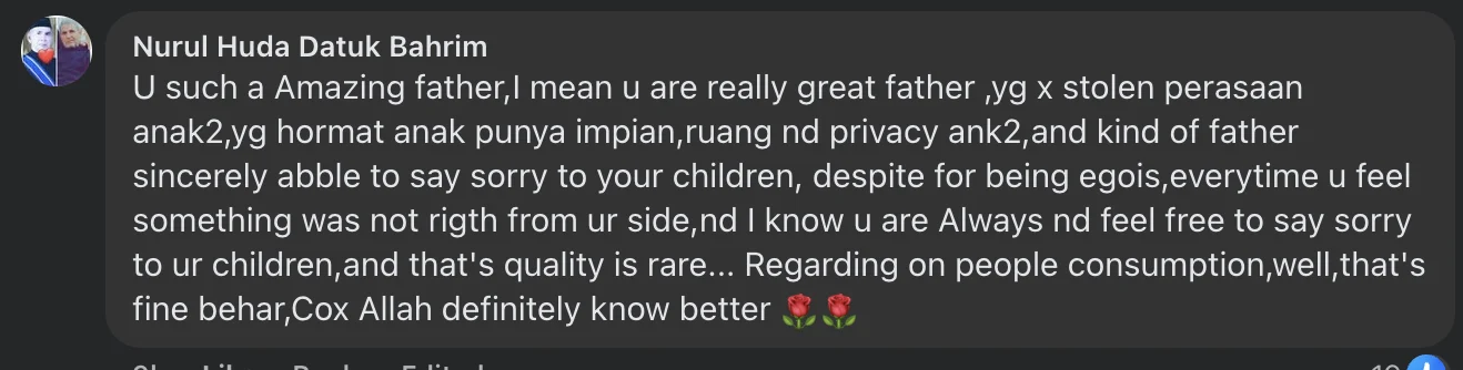 Apa yang menyentuh hati, ruangan komen dihujani kata-kata sokongan daripada peminat yang jelas memahami situasi Behar sebagai seorang bapa.