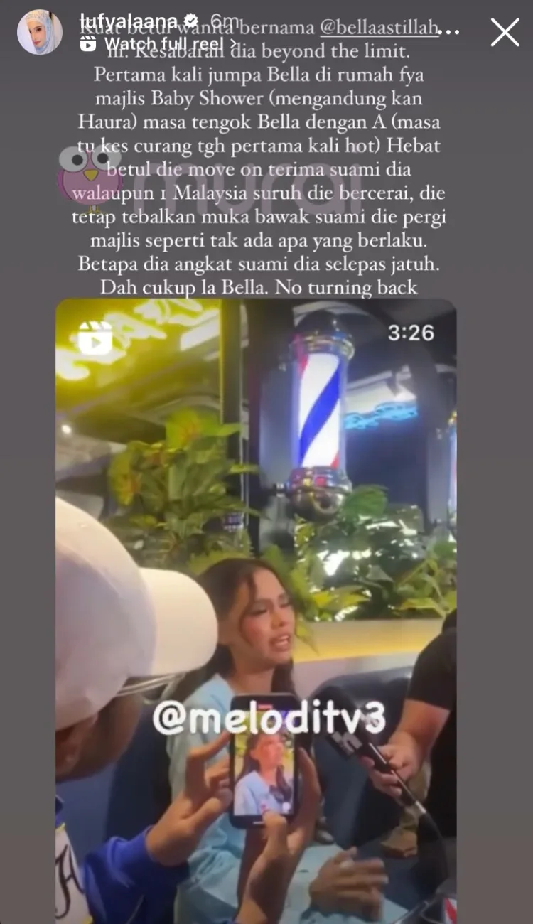Menurut Lufya, dia akui Bella Astillah merupakan seorang wanita yang sangat kuat biarpun di saat rakyat Malaysia menggesanya untuk bercerai selepas Aliff ‘kantoi’ curang.