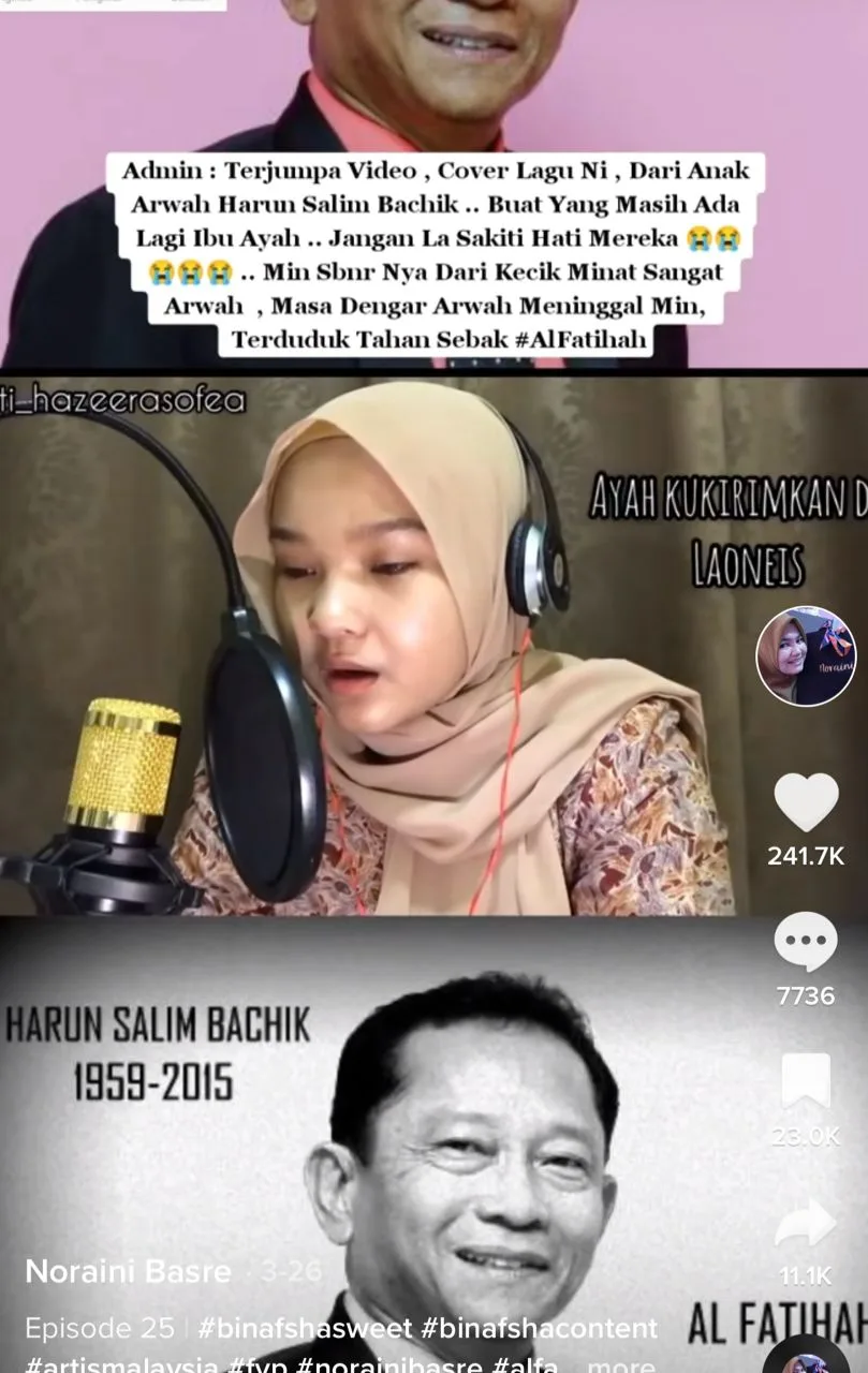 Berbahas soal itu, baru-baru ini satu rakaman dengan paparan anak arwah Harun Salim Bachik menyanyikan semula lagu ‘Ayah Ku Kirimkan Doa’ telah menjadi perhatian ramai.