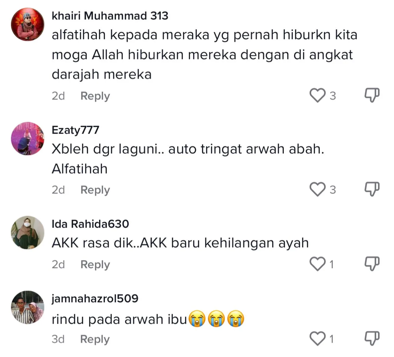 Dalam perkongsian rakaman tersebut alunan suara dan bait lirik lagu itu membuatkan ramai tersedu dan terusik jiwa mendengarkannya.