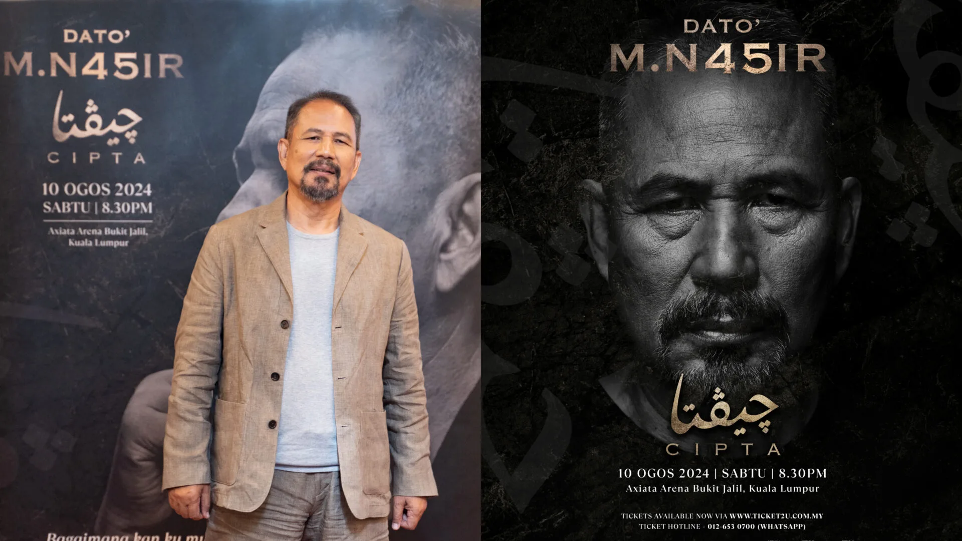 Dan di DATO’ M.N45IR CIPTA, beliau akan mempersembahkan karya-karya yang telah dicipta dalam sebuah bentuk persembahan yang belum pernah disaksikan sebelum ini,” ujar Iman Tang dari Icon Entertainment.