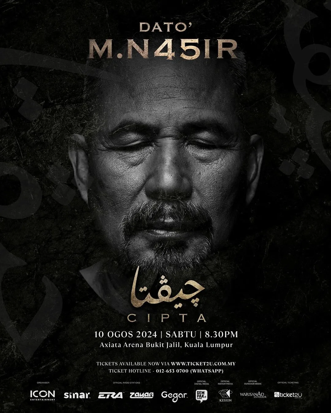Jadi sudahkan anda bersedia untuk ini? Sebuah konsert berskala besar untuk jiwa-jiwa yang ingin terus meraikan CIPTAAN sifu kesayangan mereka. Sebuah konsert yang sememangnya dinanti-nantikan tahun ini dengan visual, repoirtaire lagu, susunan muzik, pemuzik malah penyanyinya sendiri- Dato M.Nasir yang dihormati segenap usia dan golongan.
