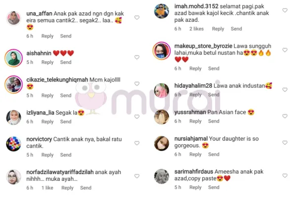 Melihat muatnaik yang dikongsikan Eira dan Azad di Instagram mereka, ramai yang memuji kecantikan semulajadi puteri kedua pasangan selebriti ini.
