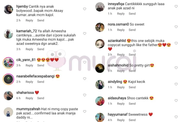 Rata-rata ramai yang memberi komen wajah Ameisya kelihatan seperti pelakon bollywood jelita iaitu Kajol, dan ada juga yang menyatakan wajah anak kedua pasangan ini saling tak tumpah seperti wajah Azad.