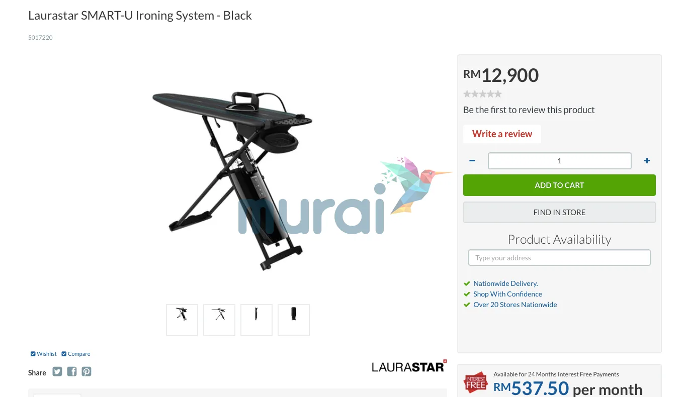 Menerusi carian Murai.my, seterika tersebut dianggarkan berjumlah RM12,900 dan merupakan antara model dan keluaran terkini bagi jenama itu.