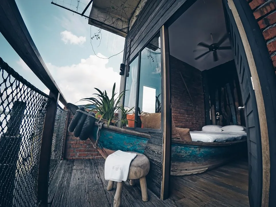 The Happy 8 Retreat menyediakan 33 tema bagi setiap bilik penginapan yang mana mempunyai kisahnya yang tersendiri dan terletak bersebelahan sungai dan kampung. Antaranya ialah Dolphin Room, Dolphin Family Room, Eagle Room, Eagle Family Room, Mangrove Room, dan Chacoal Family Room.