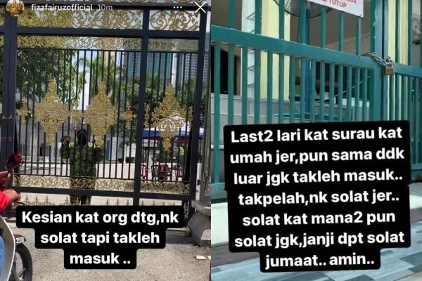 Pelakon, Datuk Fizz Fairuz meluahkan rasa kecewanya apabila dia dan individu lain ditahan daripada memasuki perkarangan masjid untuk menunaikan solat Jumaat.