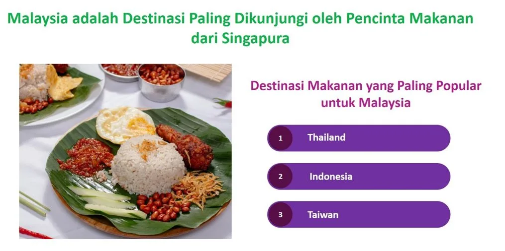 Data tinjauan menunjukkan bahawa para pelancong mencari destinasi untuk menikmati makanan dan tradisi tempatan, bukan hanya bersiar-siar.