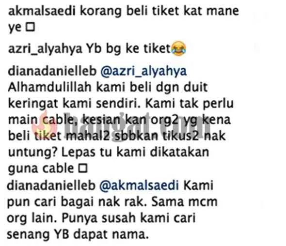 Menurut Ummi, dia dan rakan-rakan begitu kesal dituduh mereka ditaja oleh VIP sedangkan tiket tersebut dibeli sama seperit orang.