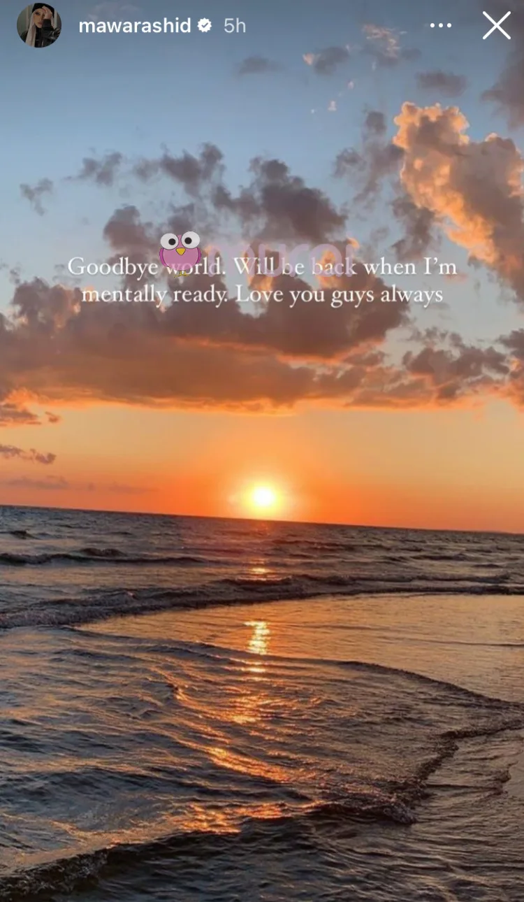 Ibu kepada tiga cahaya mata ini juga memberi makluman mengenai dirinya yang mahu berehat sebentar dari media sosial dan akan kembali apabila sudah bersedia .