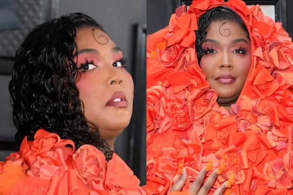 Tampil dalam solekan serba peach yang dipadankan bersama dengan gaun korset kristal Dolce & Gabbana, jurusolek Lizzo iaitu Alexx Mayo menggunakan produk seperti [Charlotte Tibury Beauty Blush Wand] dan bulu mata besar lentik daripada [Velor Lashes]