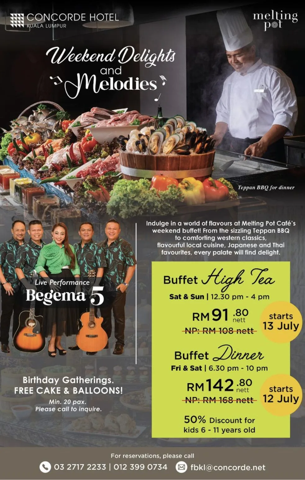 Melting Pot Cafe dengan bangganya memperkenalkan buffet makan malam dan high tea terbaharu mereka, menampilkan hidangan lazat dan pelbagai pilihan sajian enak yang pastinya memikat selera anda. Menu baharu ini akan bermula sekarang dan akan diteruskan sehingga tarikh yang akan dimaklumkan kemudian.