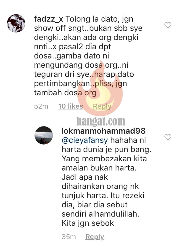 Bagi sesetengah pihak yang melihat gambar tersebut menilai perbuatan Dato Aliff Syukri seperti mahu menunjuk-nunjuk kekayaan beliau.