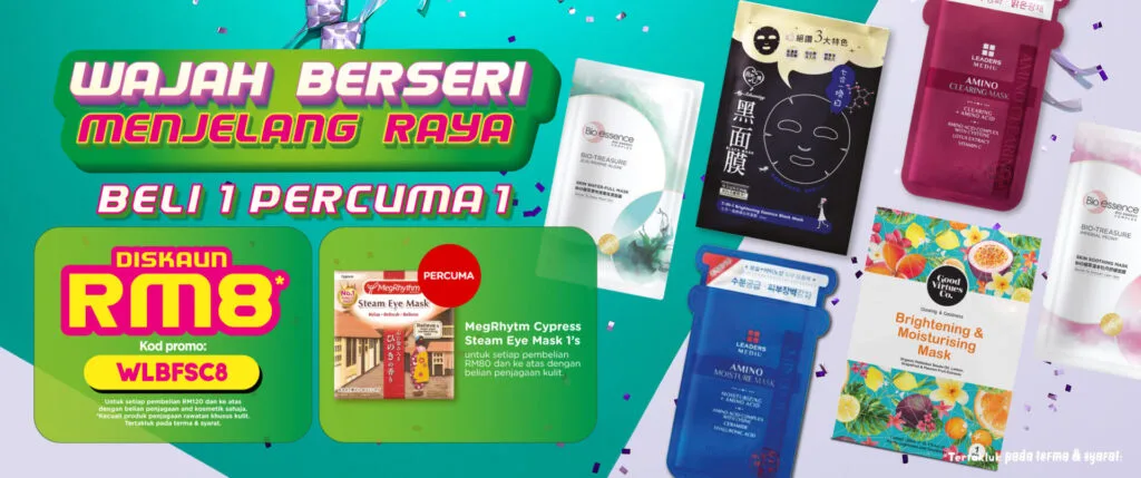 - Percuma MegRhythm Eye Mask dengan pembelian RM80 mana-mana facial skincare mask.[KLIK]