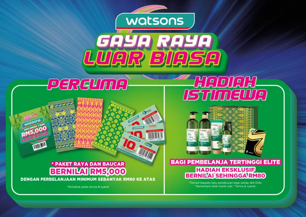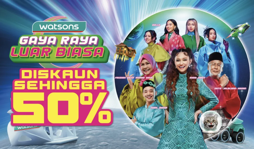 Istimewa tahun ini, Watsons meraikan kempen Gaya Raya Luar Biasa dengan menawarkan promosi khas buat ahli Watsons sehingga 50 peratus di rangkaian kedai Watsons seluruh negara dan laman digital [KLIK].
