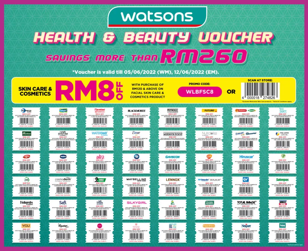 Yang gemar berbelanja produk kesihatan dan kecantikan, jangan lupa untuk dapatkan baucar istimewa dari Watsons. Anda boleh jimat lebih daripada RM260, [KLIK] antaranya seperti;