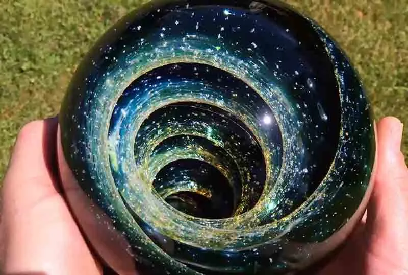 Seorang artis seni kaca, Scott Pernicka mempunyai keupayaan untuk menghasilkan permandangan galaksi dalam bola kaca. Buatan tangan berbentuk sfera ini mewujudkan ilusi optik yang membuat orang yang melihat percaya mereka merenung ke angkasa lepas.