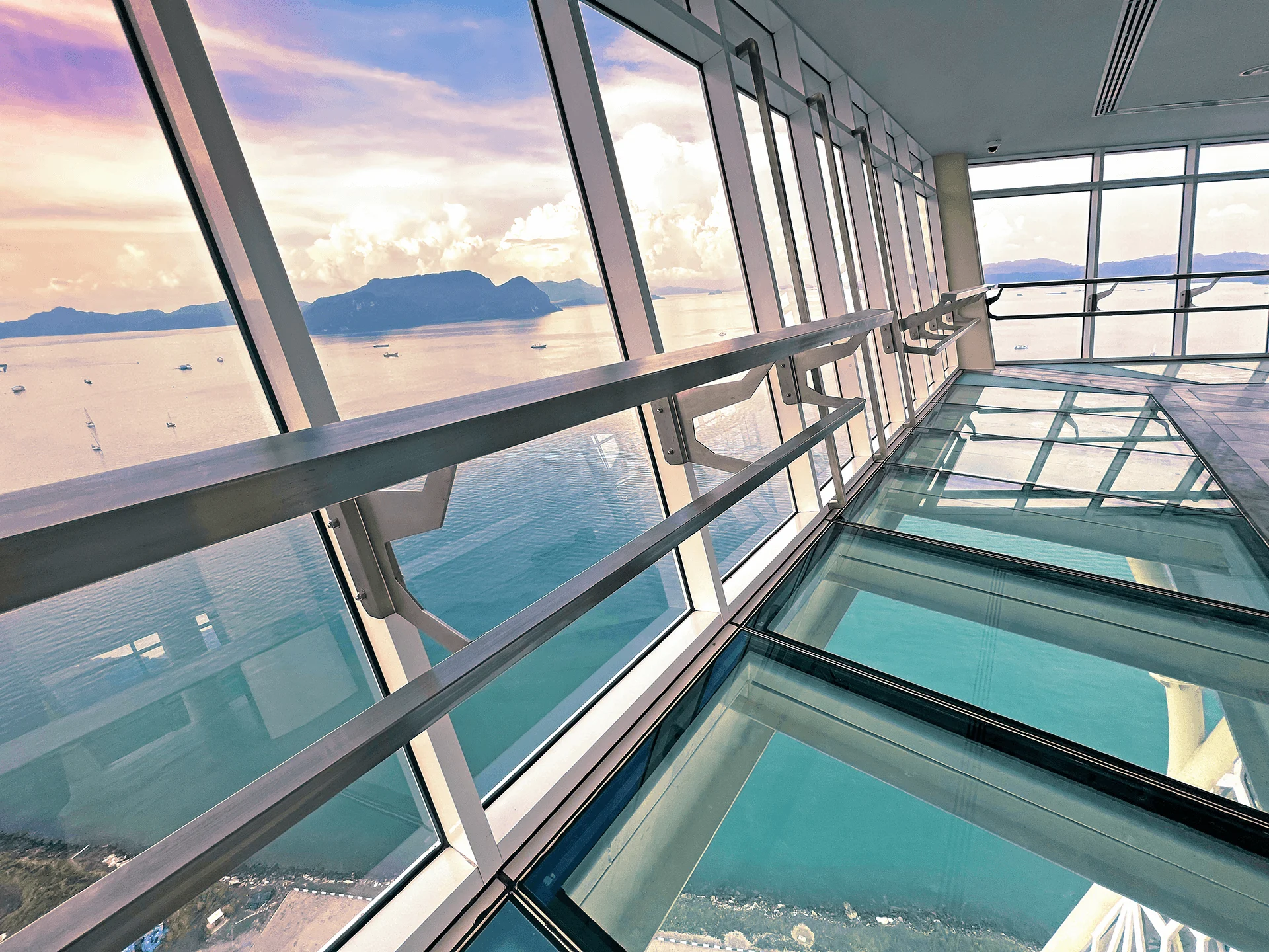 Salah satu tarikan utama di sini ialah dek pemerhati di tingkat 18 dan 33 yang menawarkan pemandangan panorama 360 darjah bandar Kuah serta Laut Andaman. Lebih mencabar, pengunjung boleh mencuba pengalaman berjalan di atas jubin kaca di dek tertinggi. Bagi yang gayat, memang akan berdebar, tetapi pengalaman ini sememangnya sukar dilupakan.