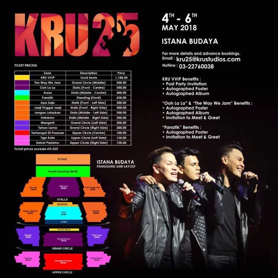 Harga tiket konsert bermula RM158 dan RM1,188. Hubungi 03-4026 5555/2276 0038.