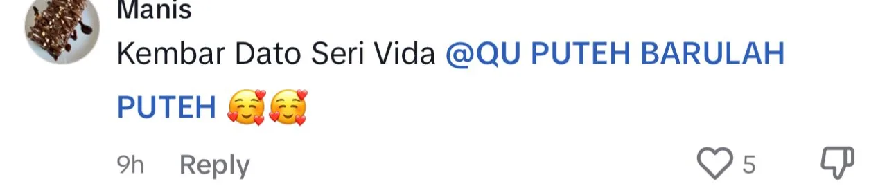 Menjengah ke ruangan komen, rata-rata warganet bersetuju bahawa wanita berkenaan memiliki paras rupa seakan-akan Datuk Seri Vida sehingga ada yang mula berasa tidak senang.