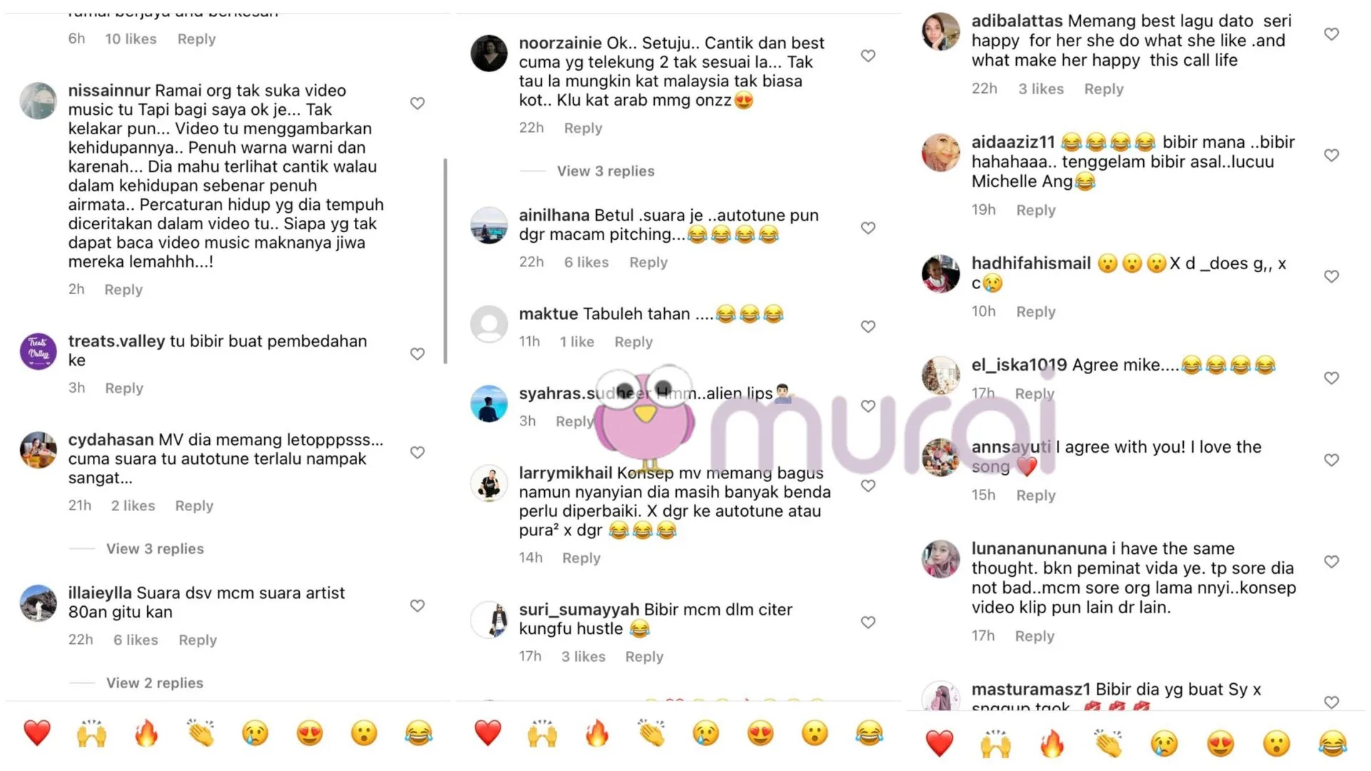“Konsep MV memang bagus namun nyanyian dia masih banyak benda perlu diperbaiki. Tak dengar ke auto tune atau pura-pura tak dengar.” – komen mereka