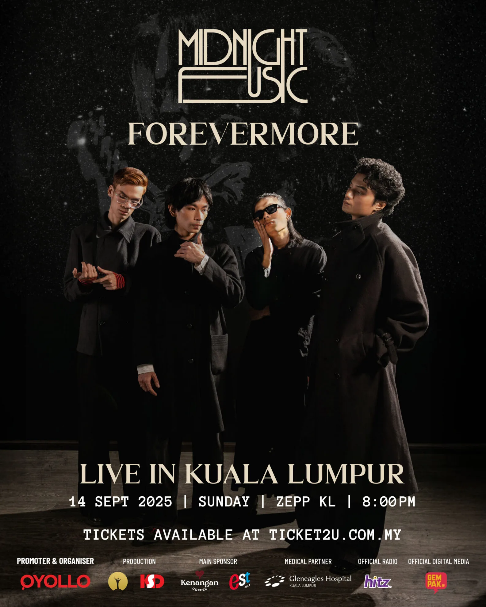 Band alternatif popular Malaysia, Midnight Fusic, bakal mengadakan konsert perdana terbesar mereka, Midnight Fusic Forevermore 2025, pada 14 September 2025 di Zepp Kuala Lumpur, sempena ulang tahun ke-10 penubuhan mereka.