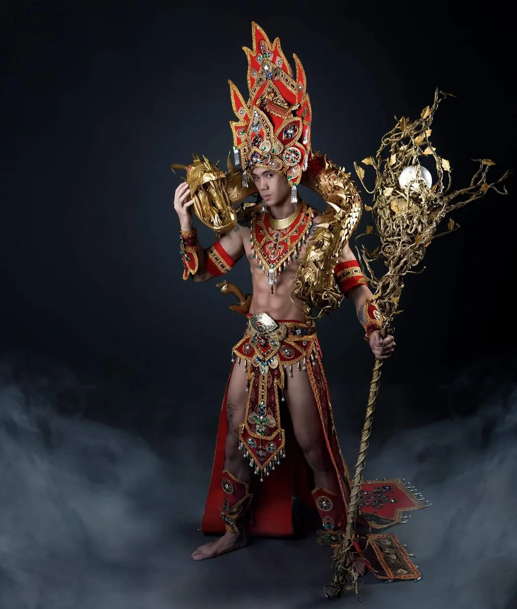 Jika wakil Malaysia menerusi Miss Grand International dan Miss Universe 2018 memperagakan kostum berinspirasikan Burung Kenyalang dan Perahu, lain pula yang ditampilkan oleh Mister Universal Ambassador Malaysia 2018 ini.