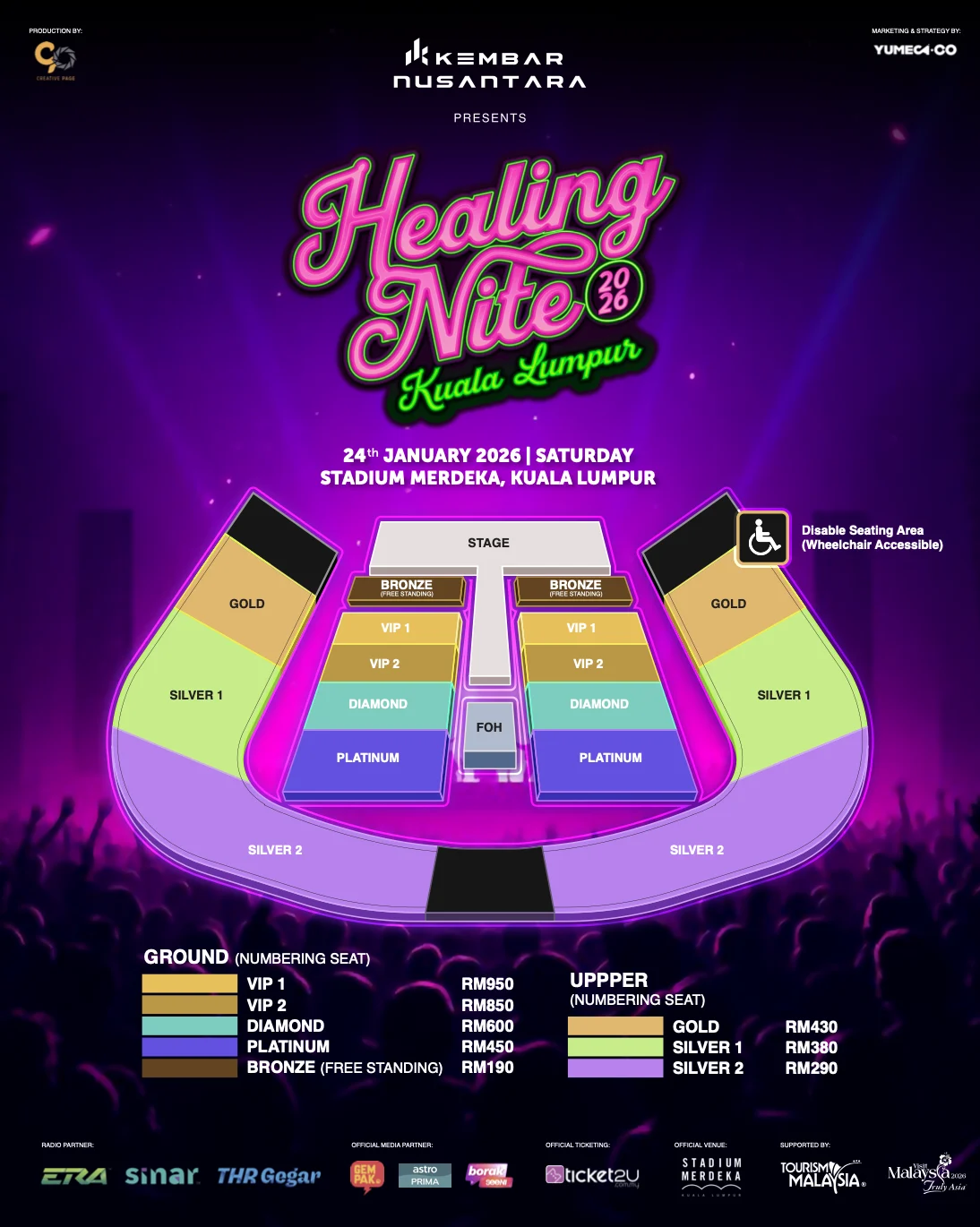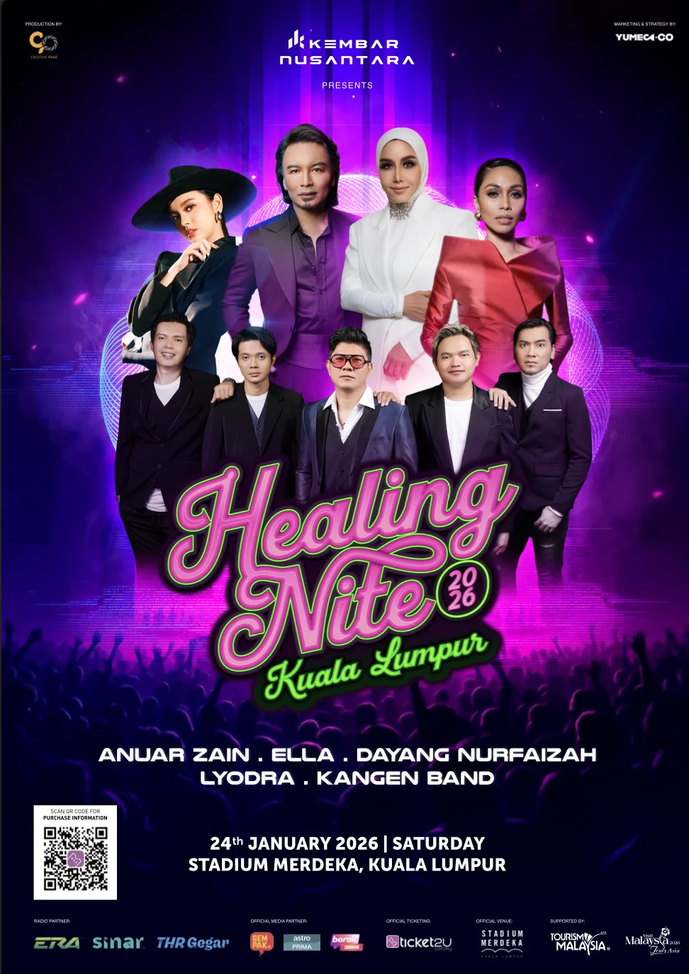 Dengan gabungan legenda, vokal premium, nostalgia dan bintang generasi baharu, Healing Nite 2026 dijangka menjadi antara persembahan paling ‘menyentuh jiwa’ yang pernah dianjurkan di tanah air.