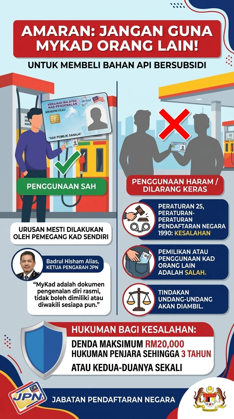 Lebih ‘ngeri’, pemilik MyKad pun boleh dikenakan tindakan walaupun pinjamkan kad dengan niat baik.
