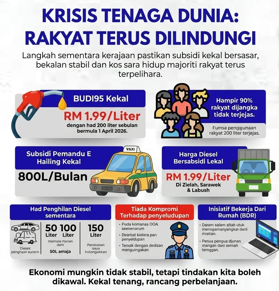 Namun, bermula 1 April 2026, kerajaan menetapkan had penggunaan kepada 200 liter sebulan, berbanding 300 liter sebelum ini.