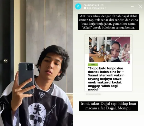 Naim menerusi Instagramnya mendedahkan golongan anti vaksin ini sering berselindung di sebalik agama.