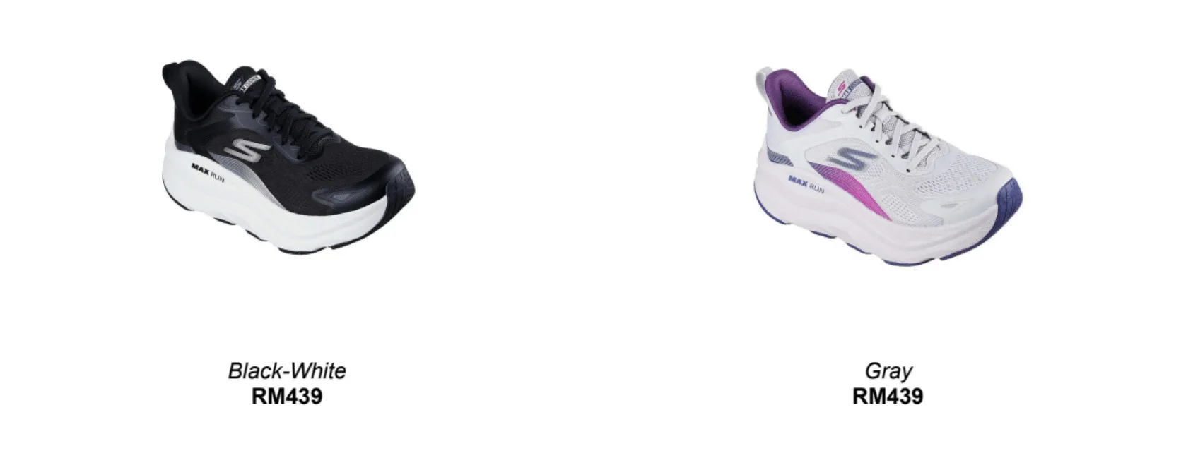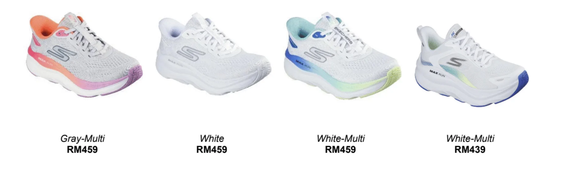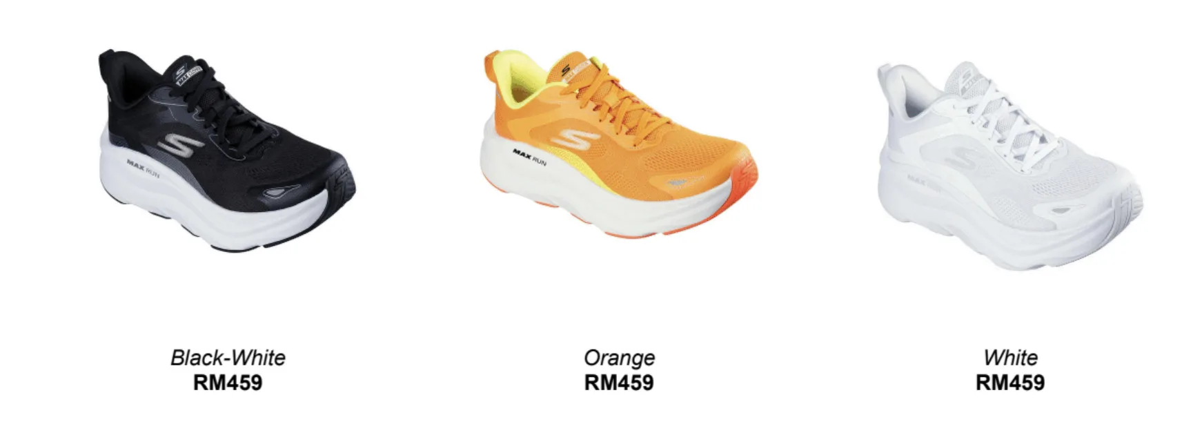 Bagi yang berminat, Max Run kini dijual dari RM 439, dengan pelancaran tambahan pada 17 Oktober 2025. Boleh didapati di butik Skechers terpilih seperti Pavilion Bukit Jalil, Pavilion Damansara Heights, Pavilion KL, Suria KLCC, The Exchange TRX Mall dan 1 Utama Shopping Centre, atau secara online di Skechers.com.my.