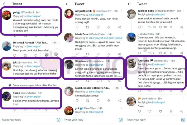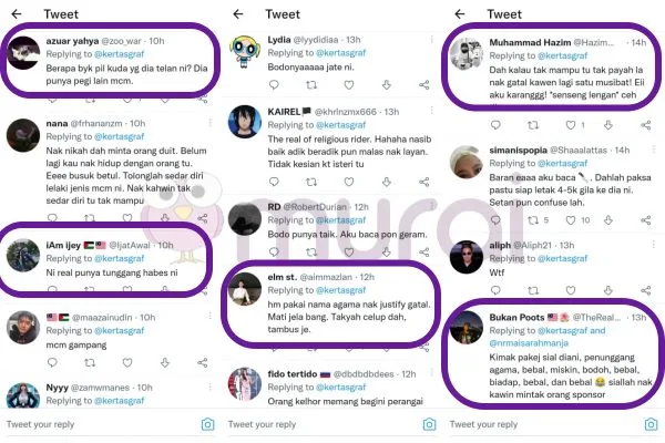 “Dasar jantan tak guna. Sedap ja tunggang agama demi nafsu binatang kau. Adik-beradik dah tegur pun tak faham bahasa. Nak tunjuk dia lah ustaz yakin tempat duduk kelas pertama dekat syurga. Jijiklah guna agama demi nafsu.”