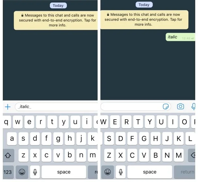Cara Italic Chat WhatsApp