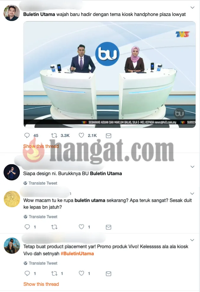 Selain set, Buletin TV3 turut menampilkan beberapa penyampai berita yang baharu bagi memberi kelainan untuk tahun 2019. Apa pun, Buletin Utama TV3 antara slot berita yang mendapat rating paling tinggi jika dibandingkan dengan stesen televisyen yang lain. Tahniah!