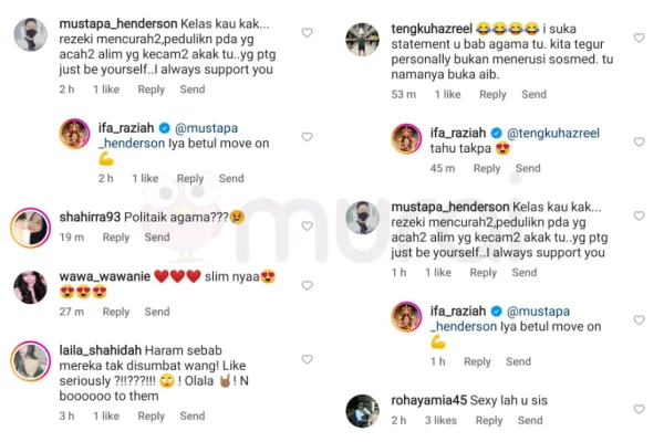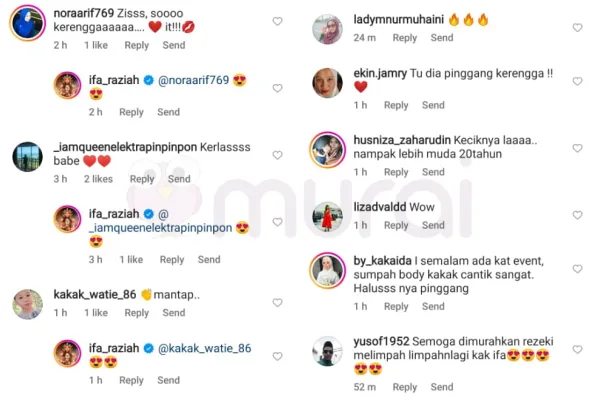 Dalam pada itu, ramai juga warga maya yang memuji pinggang Ifa sangat langsing bak kerengga diruangan komen muat naik tersebut.