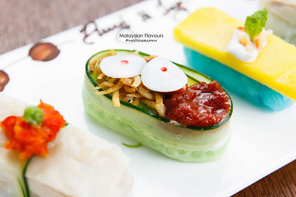 Sushi Nasi Lemak menawarkan keunikan rasa nasi lemak yang diperbuat daripada hirisan kepingan timun nipis, ikan bilis, sambal dan telur sebagai topping kepada hidangan ini. Untuk anda yang ingin mengekalkan rasa sushi dan dalam masa yang sama inginkan rasa Malaysia, hidangan ini adalah pilihan terbaik.