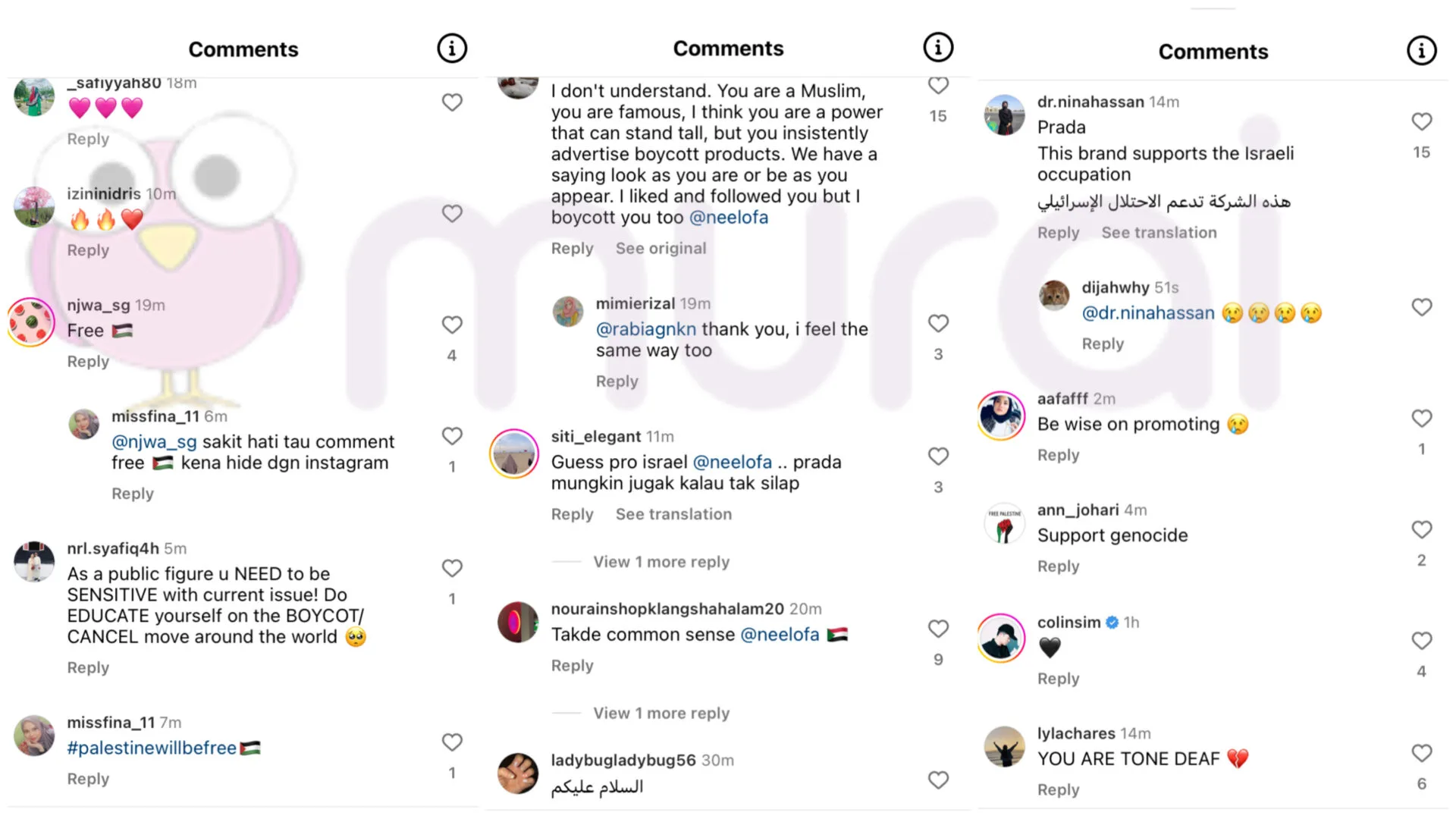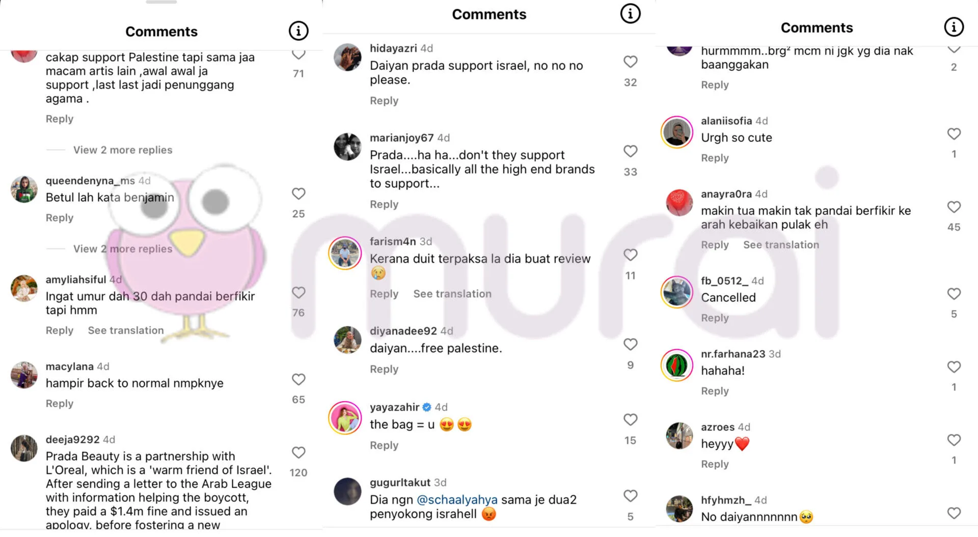 “Serius laa masih support Prada? Tak teringat saudara kita dekat Palestin ke?”.