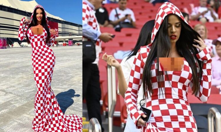 Dia yang hadir di stadium Al-Bayt untuk perlawanan pertama negaranya menentang Maghribi, telah memakai gaun berkotak-kotak merah putih seperti jersi pasukan kebangsaan Croatia. Namun, kontroversi ialah dia menunjukkan belahan badannya.