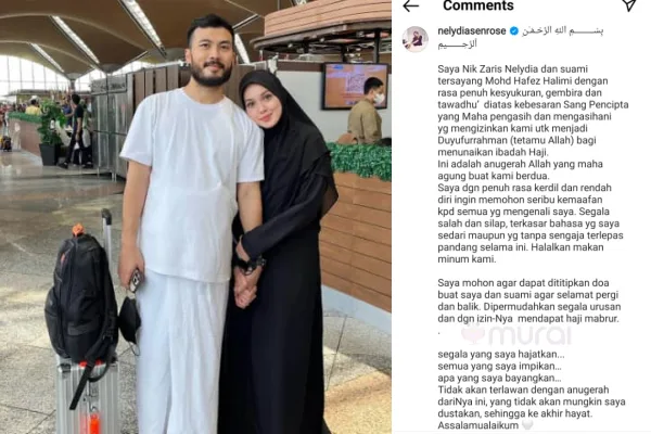 Pelakon jelita, Nelydia Senrose berkongsi berita gembira di Instagramnya pada 3 Julai (semalam) di mana dia bersama suaminya, Mohd Hafez Halimi terpilih menjadi tetamu Allah SWT bagi menjalani ibadah haji pada tahun ini.