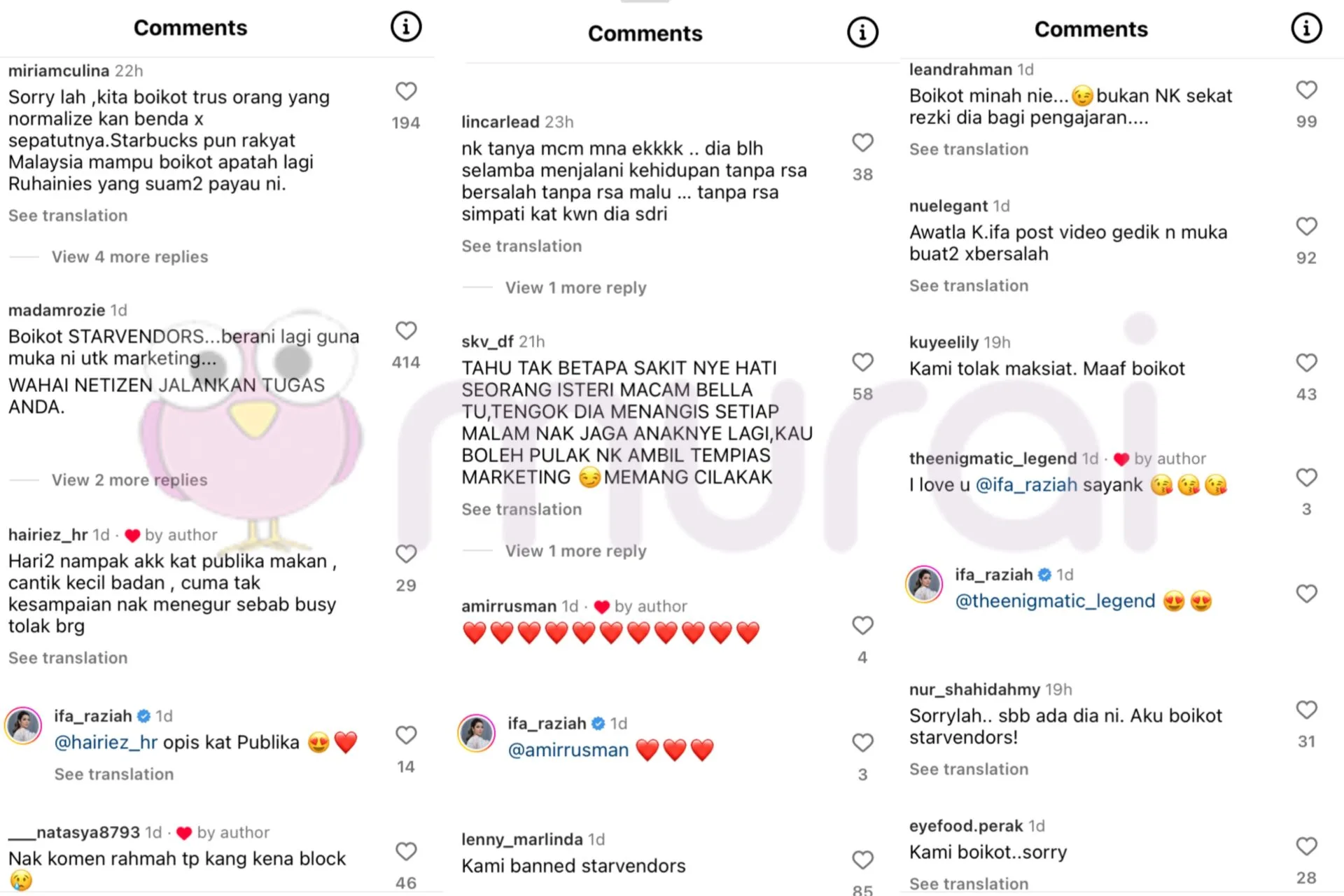 “Sorry lah, kita boikot terus orang yang normalize kan benda tak sepatutnya. Starbuck pun rakyat Malaysia mampu boikot apatah lagi Ruhainies yang suam-suam payau ni.”