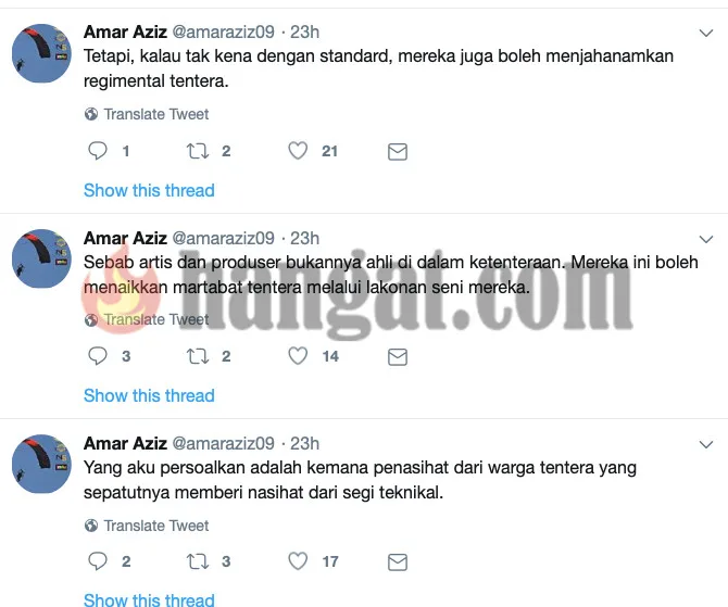 Isu tersebut tercetus apabila seorang netizen di laman Twitter yang dikenali sebagai Amar Aziz yang juga seorang anggota tentera menegur cara pemakaian baju seragam pasukan tentera yang dipakai oleh pelakon-pelakon Leftenan Zara yang dilihat seolah-olah serba tidak kena.