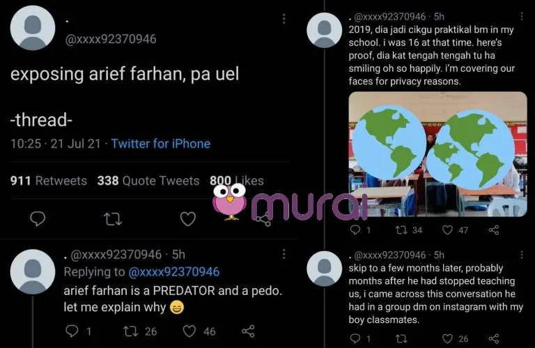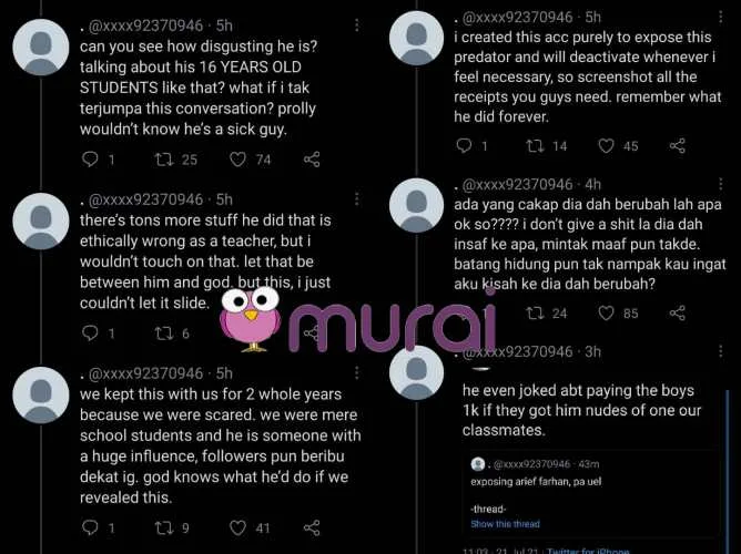 Dakwaan tersebut diakui oleh pelajar-pelajar lelaki sekolah berkenaan yang tampil mendedahkan perkara tersebut bersama tangkap layar perbualan Arief bersama mereka di laman Instagram suatu ketika dahulu.