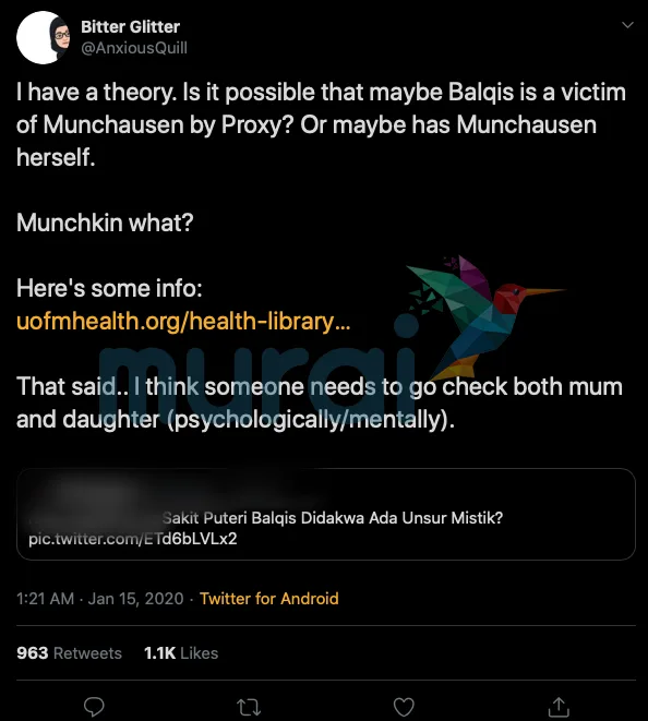 Hangat membicarakan mengenai simptom tersebut, menurut netizen tersebut dia tidak menolak bahawa Balqis menjadi mangsa mahupun mempunyai MSBP itu sendiri dan turut disokong oleh segelintir netizen yang lain.