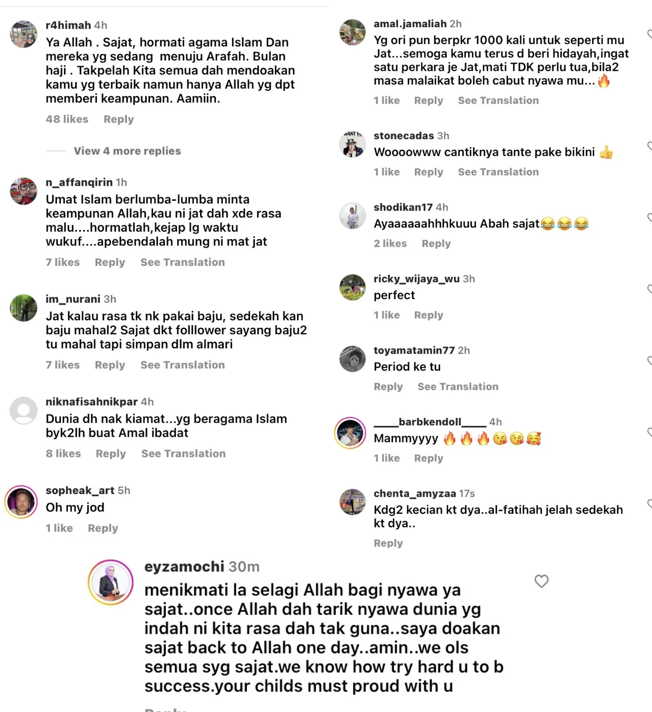 “Ya Allah Sajat, hormati agama islam dan mereka yang sedang menuju Arafah. Bulan haji, takpelah kita semua dah mendoakan kamu yang terbaik namun hanya Allah yang dapat memberi keampunan. aminn”
