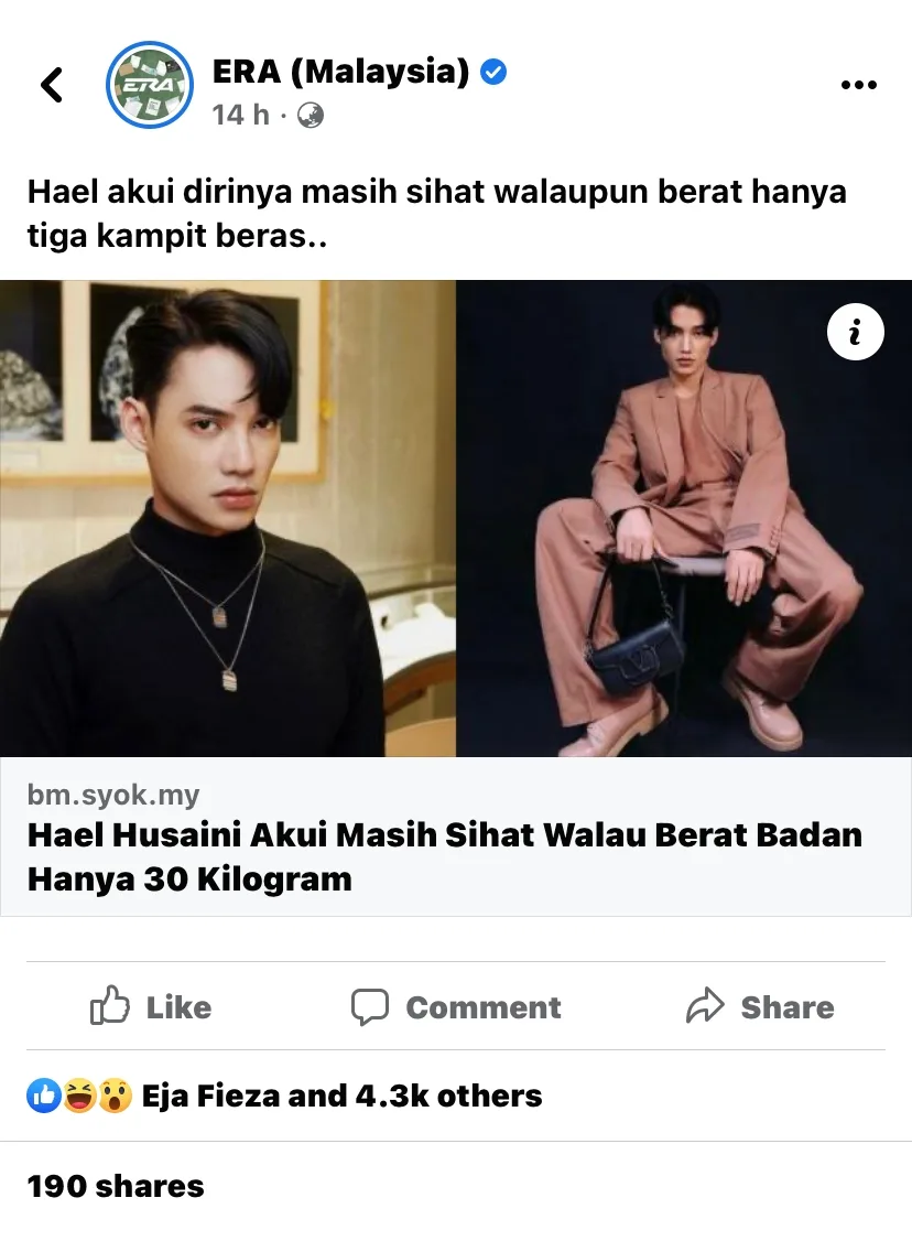 Artikel berkenaan kemudiannya, dikongsikan di laman facebook milik stetsen radio popular, Era dan meraih perhatian dari orang ramai pada ruangan komen. Rata-rata mereka mempertikaikan berat badan yang dimiliki oleh penyanyi itu.