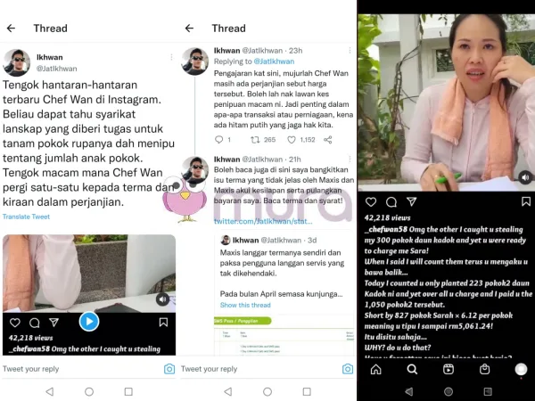 “Tengok hantaran-hantaran terbaru Chef Wan di Instagram. Beliau dapat tahu syarikat landskap yang diberi tugas untuk tanam pokok rupanya dah menipu tentang jumlah anak pokok.