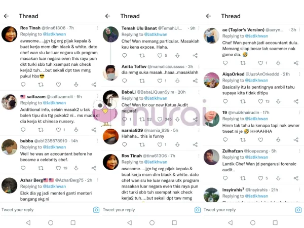 Hal yang berlaku kepada Chef Wan menjadi perbualan hangat di laman Twitter. Salah seorang pemilik akaun wargamaya dikenali sebagai Ikhwan memuji tindakan Chef Wan.